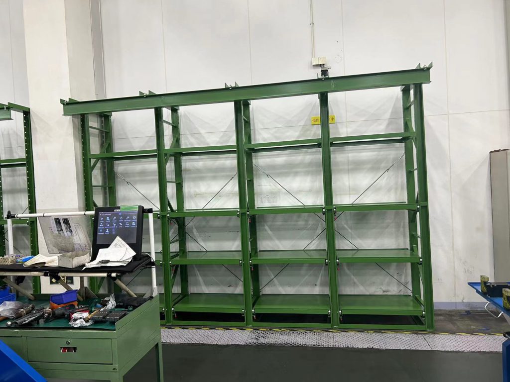 今天去無錫安裝了綠色的半抽模具架,客戶早早就把安裝空地整理好了非常配合